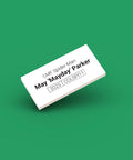 Dimensions of a single LEGO minifigure identification tag showing that they are 2 studs tall and 4 studs wide.